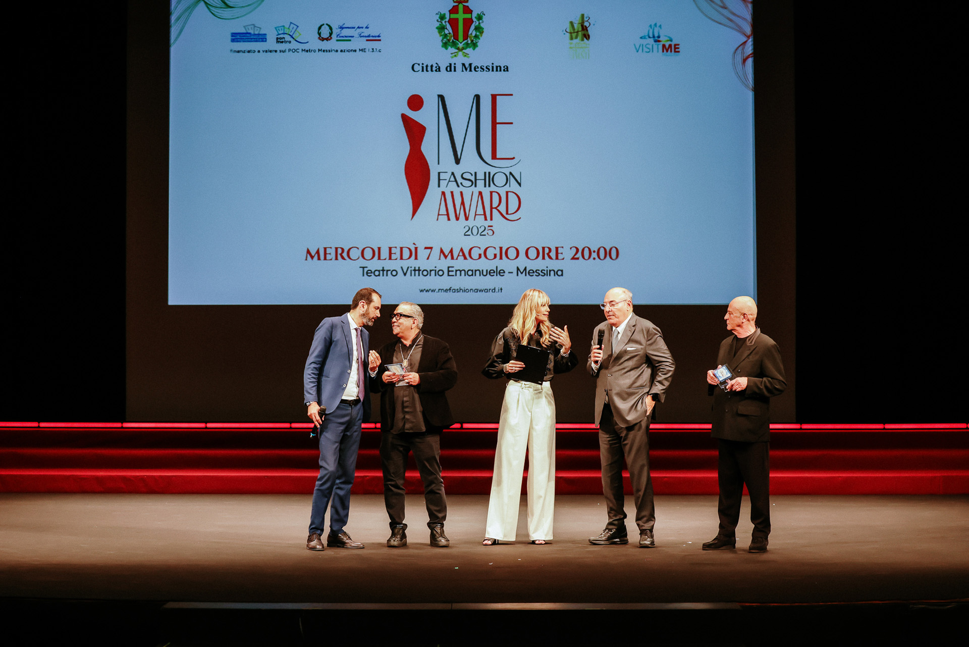 La terza edizione del ME Fashion Award si è svolta il 7 maggio al Teatro Vittorio Emanuele di Messina, confermandosi un appuntamento di rilievo nel panorama nazionale della moda. L’evento, ideato da Patrizia Casale, owner di E-Motion, è stato realizzato in coorganizzazione con l’Amministrazione Comunale e con il patrocinio della Camera Nazionale della Moda Italiana, della Camera di Commercio, di Confartigianato e Sicindustria Messina.